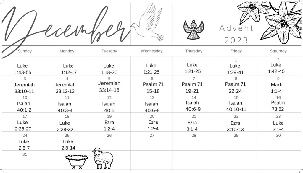 For a pdf version of this that you can overlay and fold to open, please email me at Katyandtheword at gmail.com and I will happily send you a copy! (Subject Line: Advent Calendar)