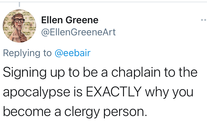 Note: The apocalyptic nature of this reading gave me pause! The exegetes (esp NL Podcast) see this as referring to Jesus’ Passion as the space/place when God draws near to us. Our current times raise largely unanswerable questions about theodicy (why). While why is fascinating, more often what we really have to answer is “Given the situation, now what? What are we called to be and do?” I do have to confess to having a list of questions for God for when I get there. Don’t know if I’ll just know the answers; won’t feel the need to know anymore; or will have them answered. But I definitely have a list!