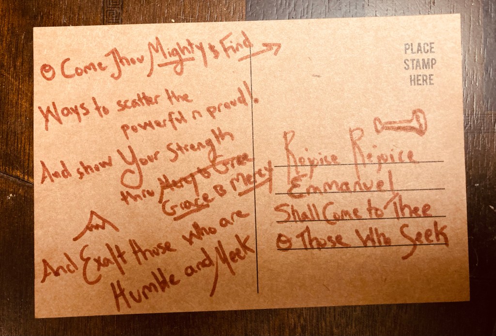 Prayer of Confession: God we confess that Mary’s message is a little strong for us. The idea that you will completely restructure the world sounds like a little much. However, we love the promise of justice and hope. We can hold on tight to a world filled with good things. Teach us how to work towards this world of the world of the Magnificat without being too overwhelmed, tired or scared we pray Amen.